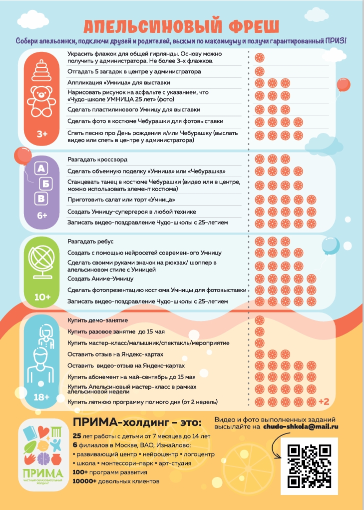 Апельсиновый фреш: акция ко Дню рождения Чудо-школы УМНИЦА