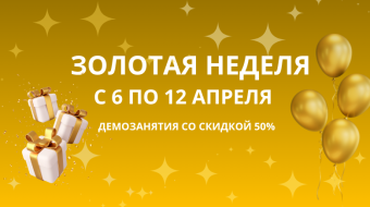 Только с 6 по 12 апреля "Золотая неделя": скидка 50% на демозанятия! Приходите, чтобы попробовать новое!